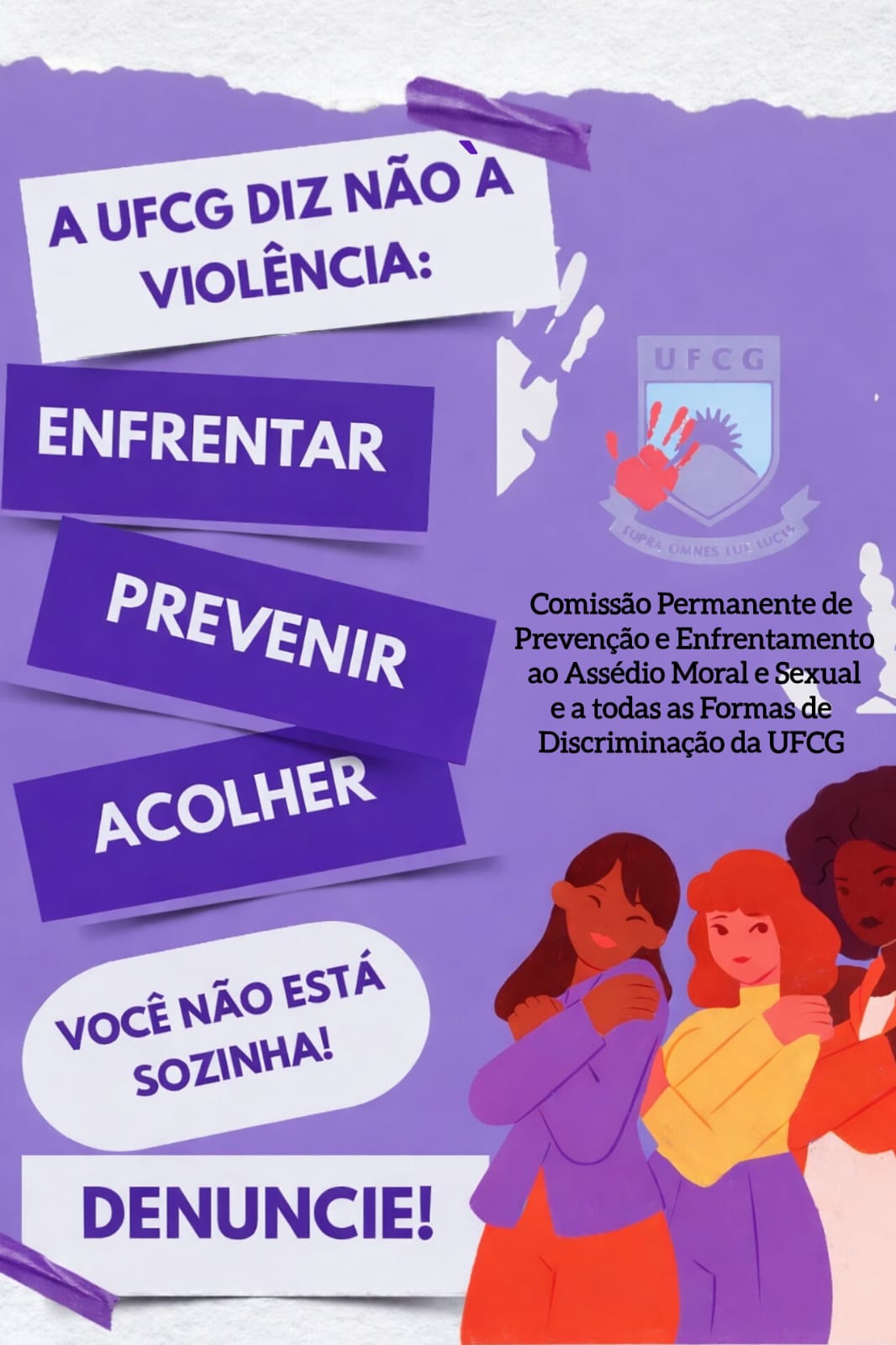 Em alusão ao Dia Internacional da Mulher, celebrado em 8 de março, a Comissão Permanente de Prevenção e Enfrentamento ao Assédio Moral e Sexual e a todas as Formas de Discriminação e Violência da Universidade Federal de Campina Grande (UFCG) está promovendo, em parceria com os centros acadêmicos da universidade, uma programação de atividades que buscam debater os diferentes contextos de enfrentamento a violência contra a mulher.