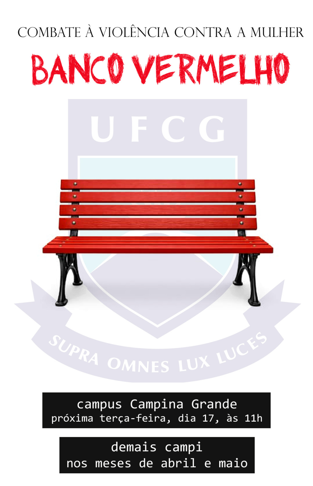 As atividades tiveram início nessa quinta-feira, dia 12, nos campi Cajazeiras e Patos, com debates sobre raízes do feminicídio, saúde da mulher, as múltiplas facetas da violência e apresentação do Comitê Permanente de Prevenção e Enfrentamento ao Assédio Moral e Sexual e a todas as Formas de Discriminação e Violência da UFCG.